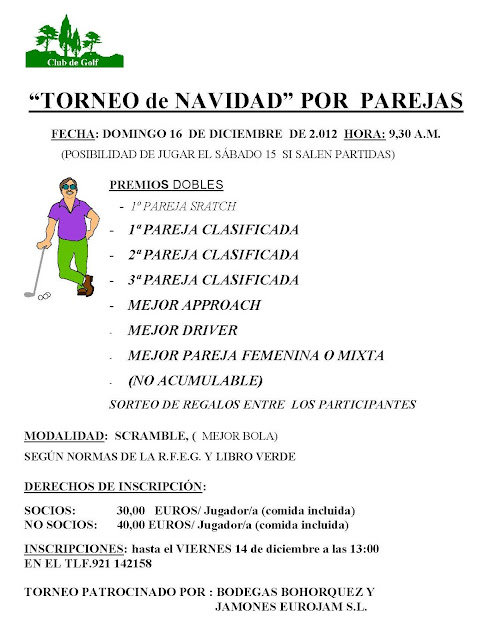 - El resultado de los hermanos Fernandez Zamarro, Ruben y Jorge, ha sido de menos 8 del campo, lo que constituye el record de los campeonatos de dobles jugados en nuestro club. Dicho resultado se produjo en el úlltimo Campeonato del año, Torneo de Navidad celebrado el 16 de Diciembre.