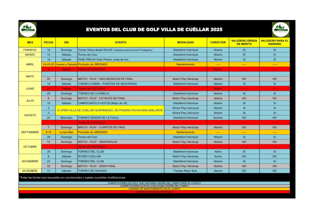 Debido al incendio en nuestras instalaciones el XI OPEN VILLA DE CUELLAR se traslada de fecha (aun por determinar) les iremos informando. El campo esta abierto con toda normalidad. Les esperamos.